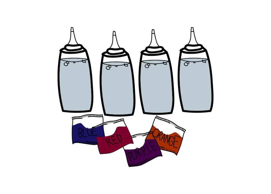 4. Prepare your dyes: Mix your fabric dye according to the manufacturer's instructions. Pour the dye into plastic squeeze bottles, one for each color you plan to use. Shake or stir the dye thoroughly to ensure it's well-mixed.