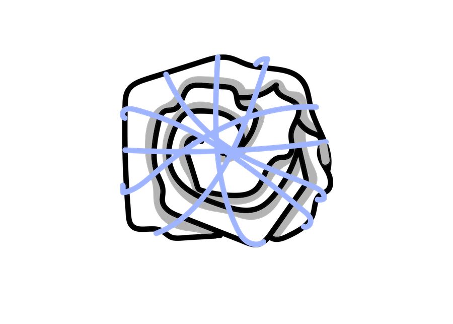 Secure the twisted T-shirt with several rubber bands, creating a pie-shaped pattern.