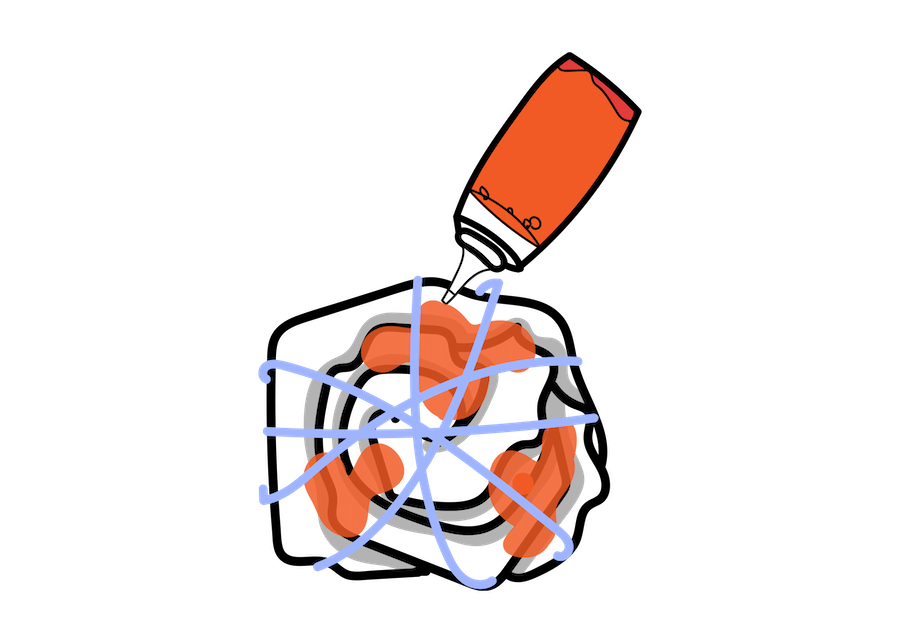6. Apply the dye: Put on plastic gloves to protect your hands. Use the squeeze bottles to apply the different colors of dye to the sections of the T-shirt created by the rubber bands. Be as creative as you like with the colors and patterns. Make sure the dye penetrates both sides of the fabric.